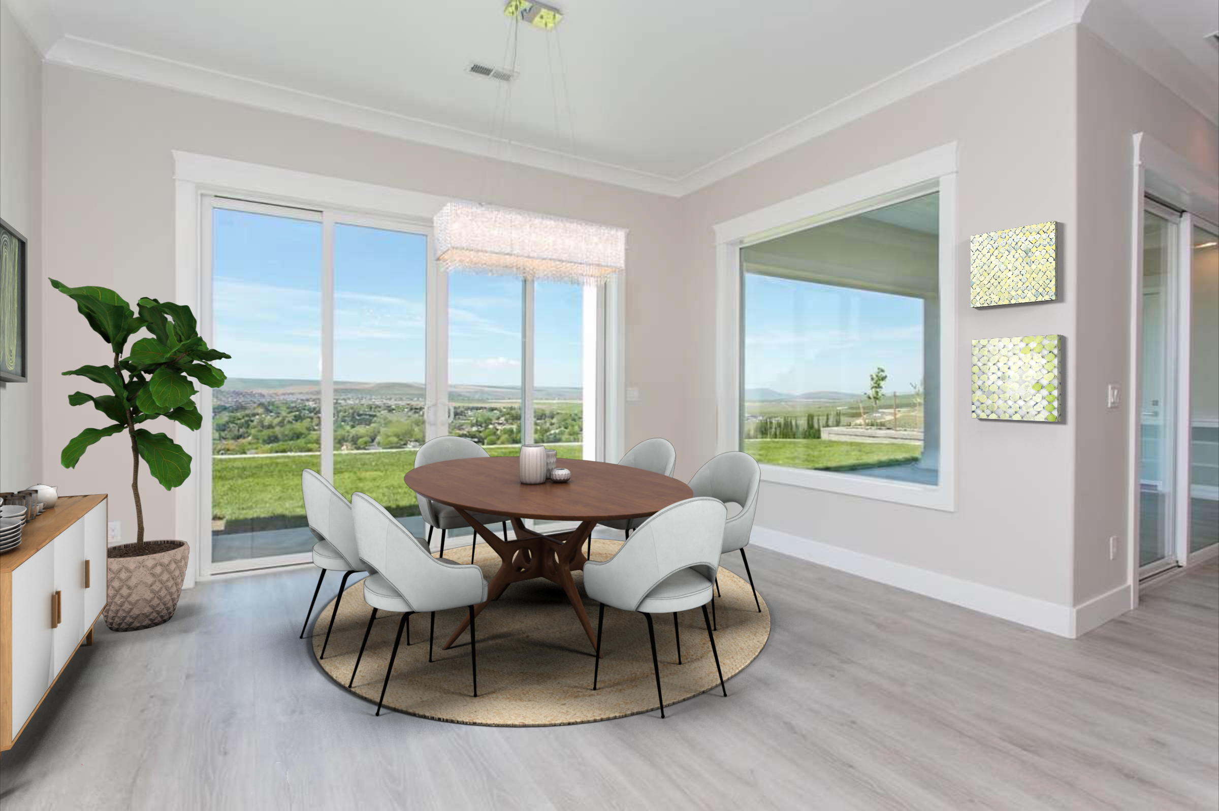 Often the first room you walk into; a living area is a popular place for families and friends to gather, watch TV or just relax. Show buyers how the space can work by adding a virtual sofa with chaise, a TV with a beautiful view on the screen and a trendy coffee table. Seeing how a space can work will help buyers imagine themselves living in the home.
